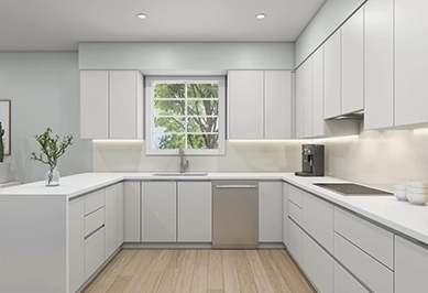We provide U-shape, L-shape, G-shape, Parallel, Island, and In-line kitchens, all customizable to your space and needs.